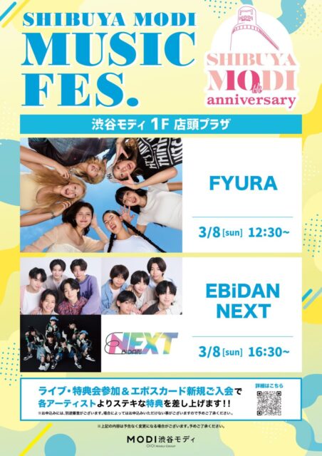 渋谷モディ1F店頭プラザで開催されるSHIBUYA MODI MUSIC FES.は、渋谷モディ10周年記念として実施されるミニライブイベントです。